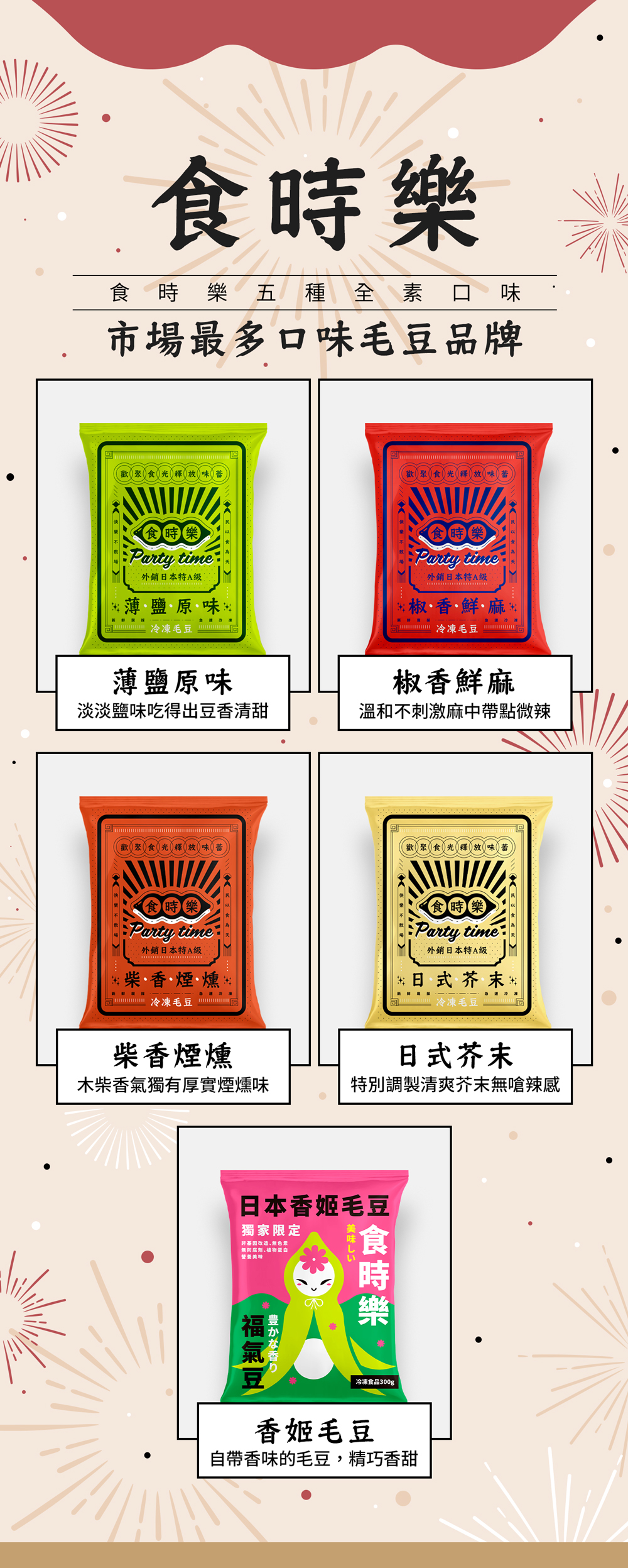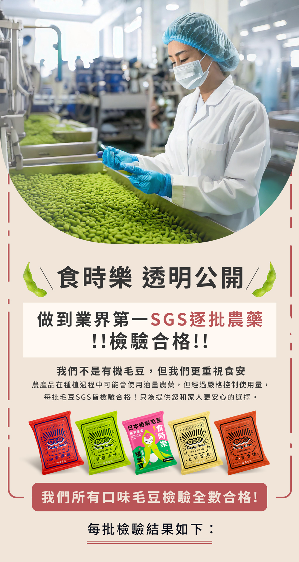 A3:食時樂毛豆共有五種口味,素食者皆可食用,因可食用成分每人不同,如需成分表請洽客服。